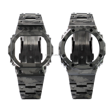 GA-2100 Mod Kit thép không gỉ Camo trường hợp đồng hồ 18mm Dây đeo kim loại rắn phụ tùng thay thế cho GM-2100 DW-5600 GW-M5610 GMW-B5000
